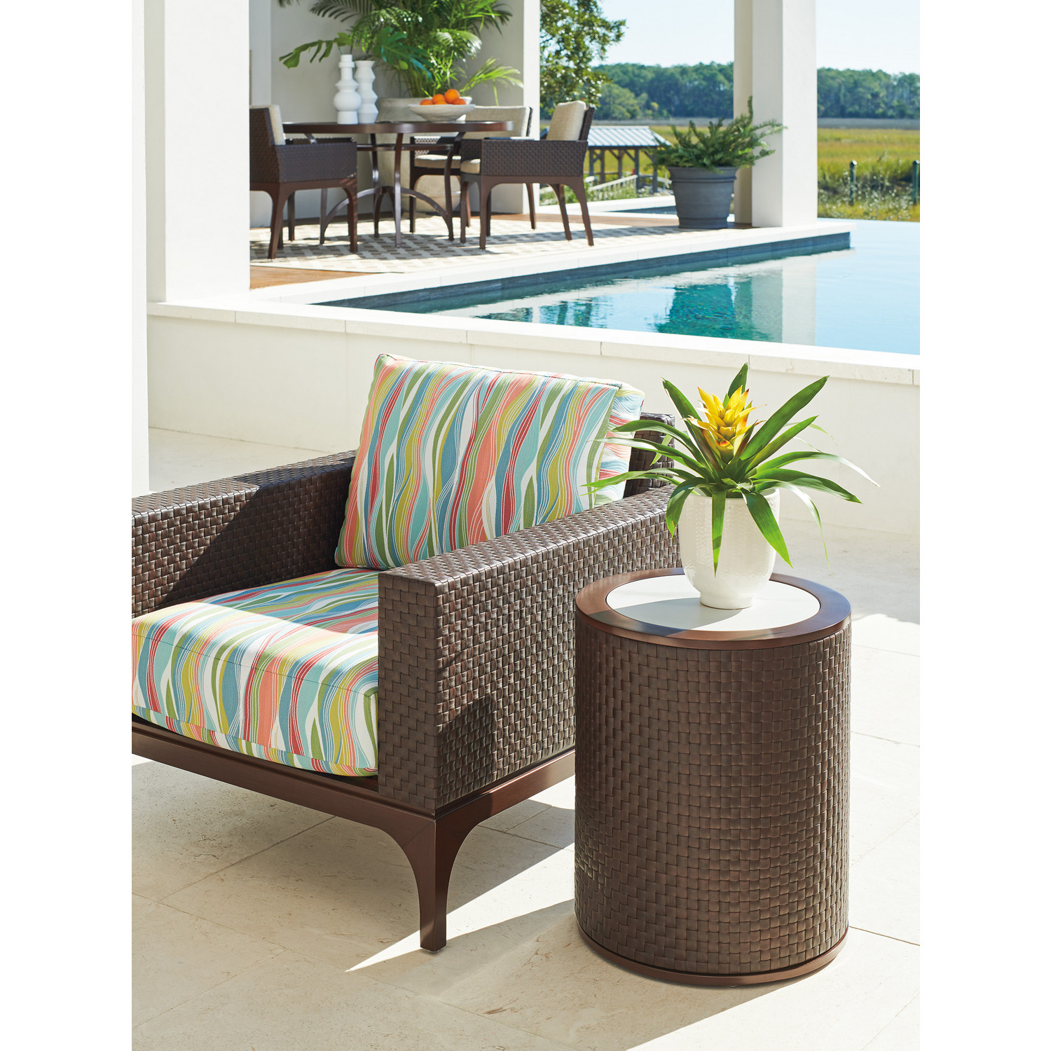 Tommy Bahama Outdoor 3420-952 Abaco Outdoor Round Side Table Sintered Stone All Weather Woven Wicker