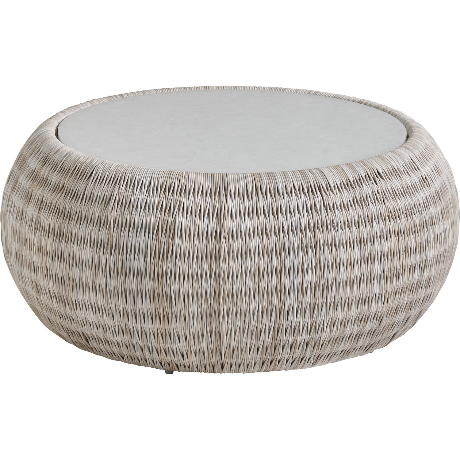 Tommy Bahama Outdoor Seabrook Outdoor Round Coffee Table in White Art Glass & Woven Wicker