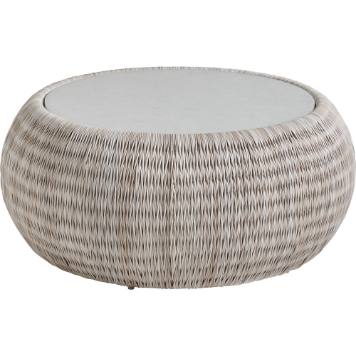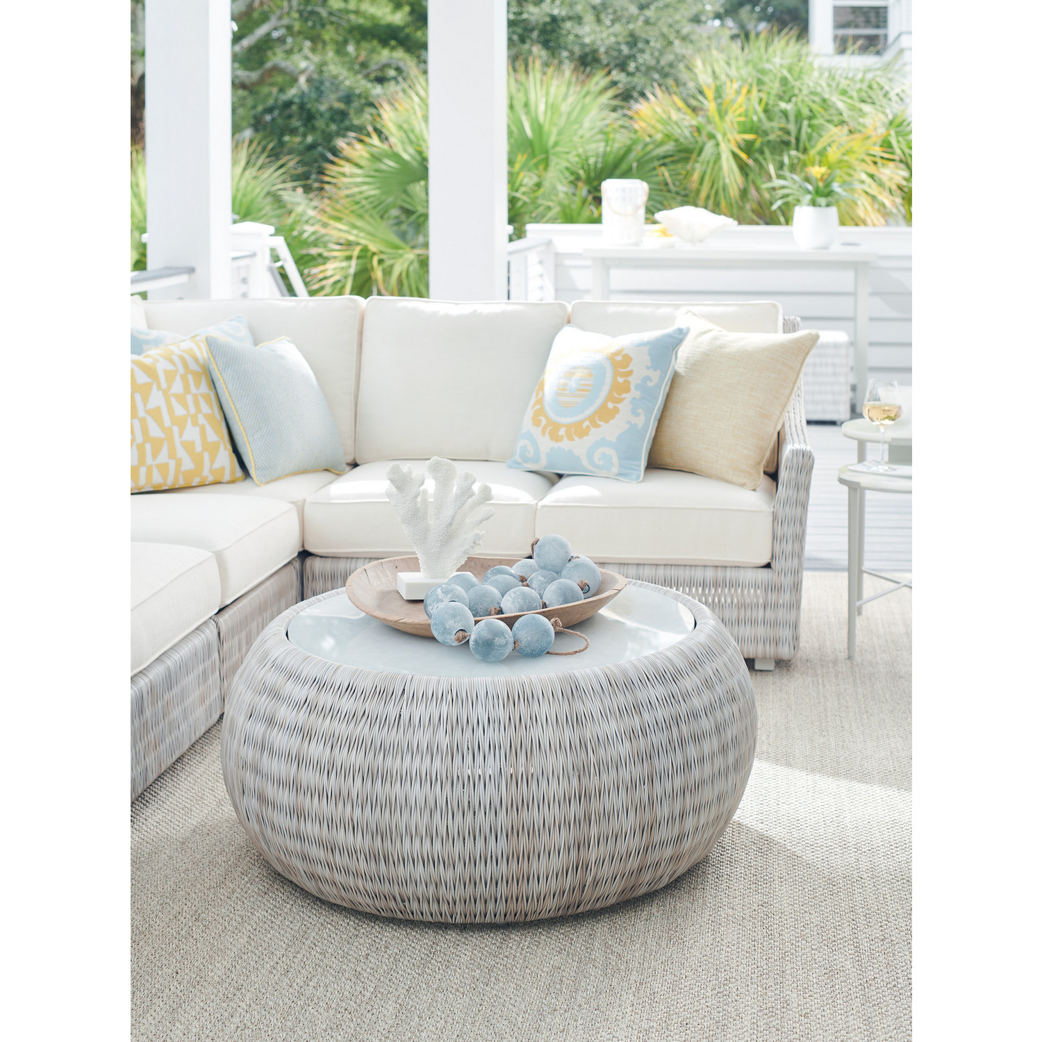 Tommy Bahama Outdoor 3430-943C Seabrook Outdoor Round Coffee Table White Art Glass Woven Wicker
