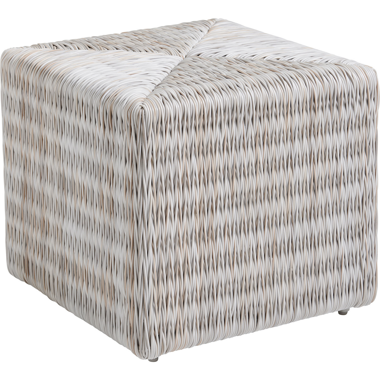 The cube ottoman offers a herringbone pattern of all-weather wicker in blended tones of ivory, taupe, and gray. The ottoman works well as freestanding seating or as a cocktail ottoman.