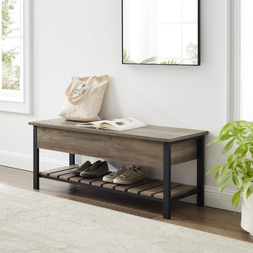 Walker Edison 48" Modern Farmhouse Storage Bench in Grey Wash