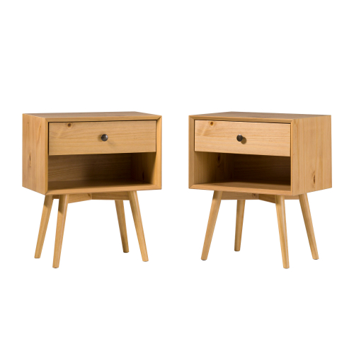 Walker Edison Mid Century 1 Drawer Nightstand in Natural Finish Pine (Set of 2)