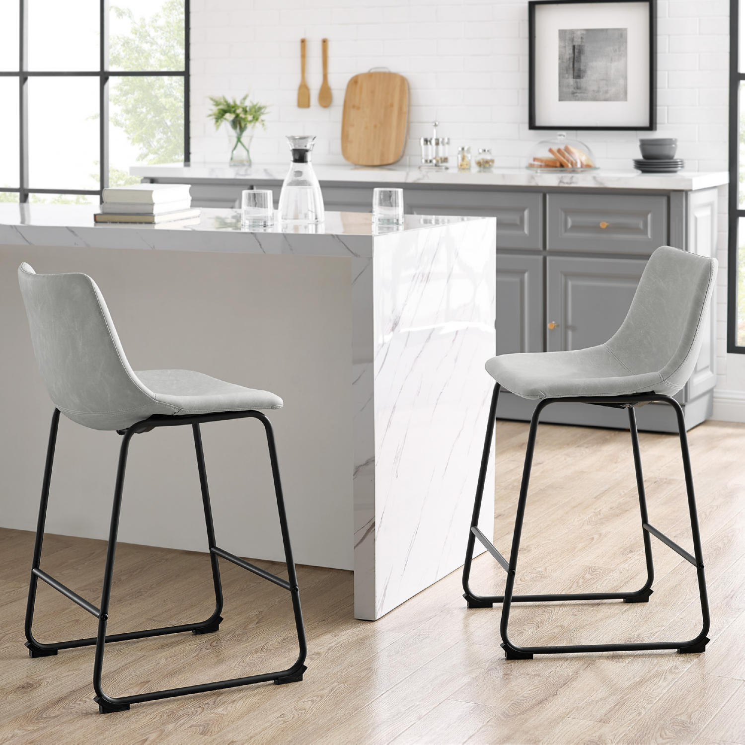 Walker Edison 26" Counter Stool in Grey Leatherette (Set of 2)