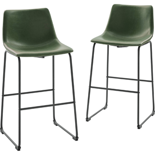 Walker Edison CHL 30" Bar Stool in Green Faux Leather & Black Metal (Set of 2)