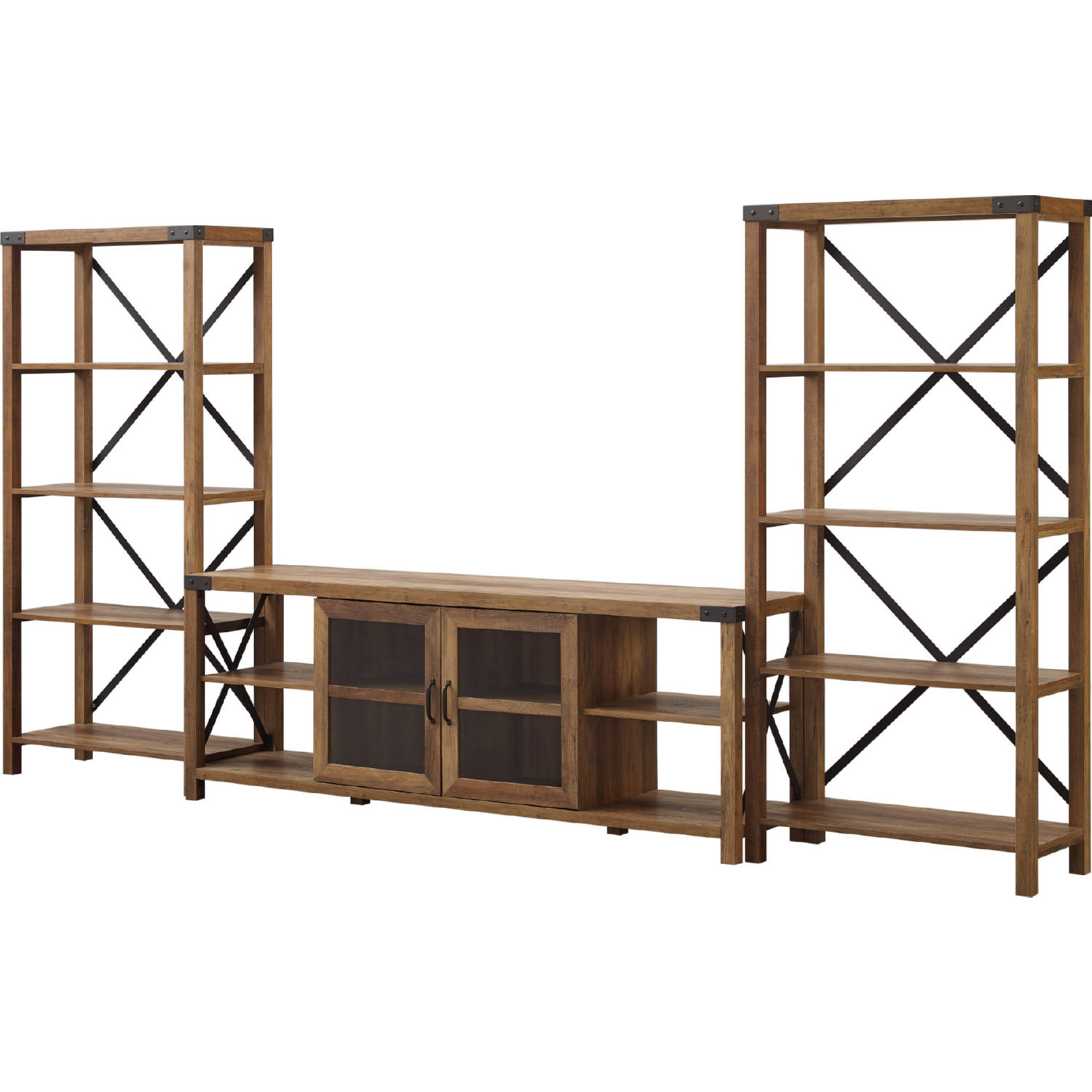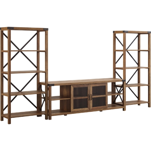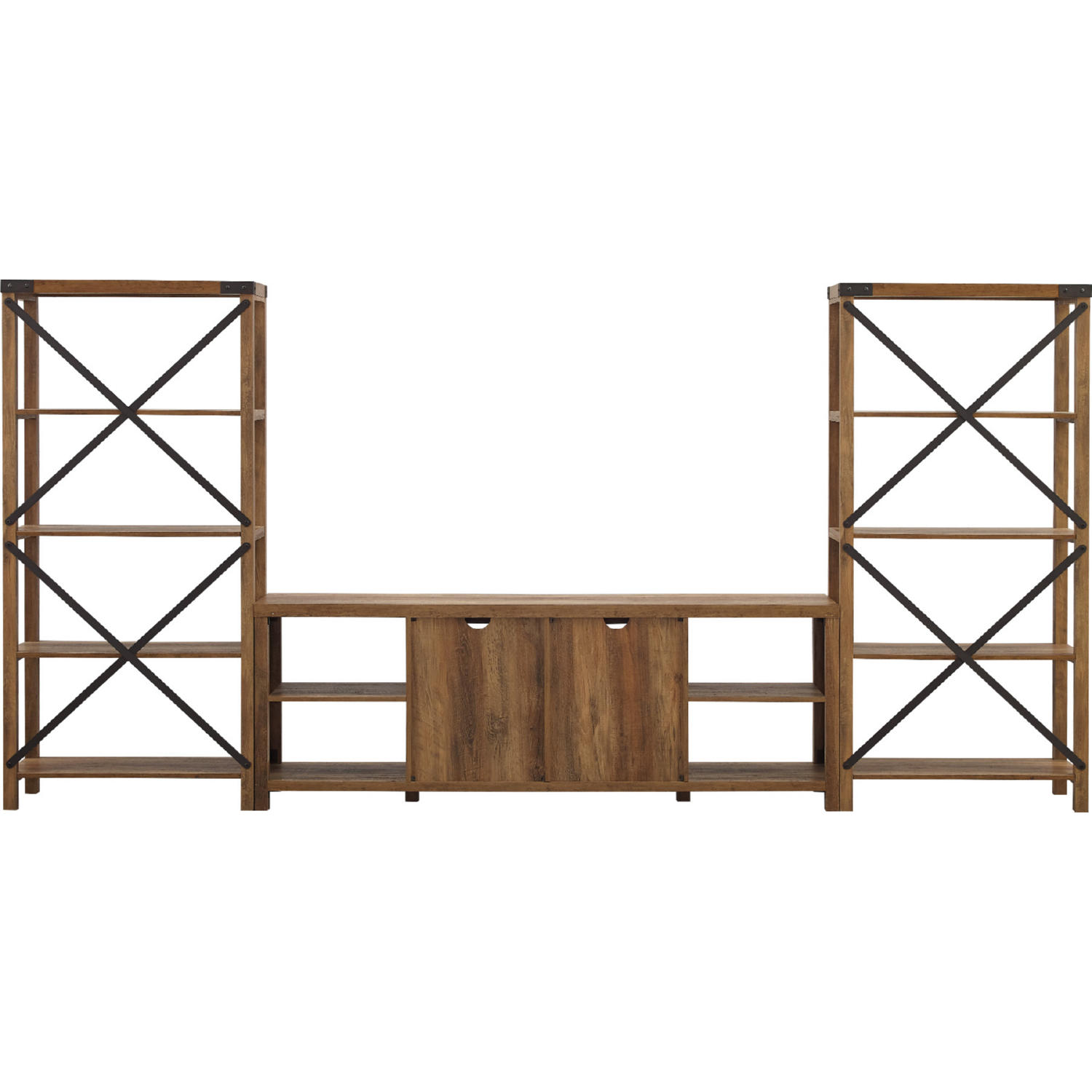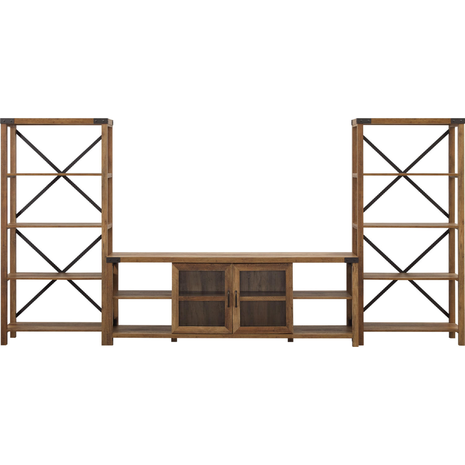 Walker Edison Metal X Entertainment Center with 70" Glass Door TV Stand in Reclaimed Barnwood