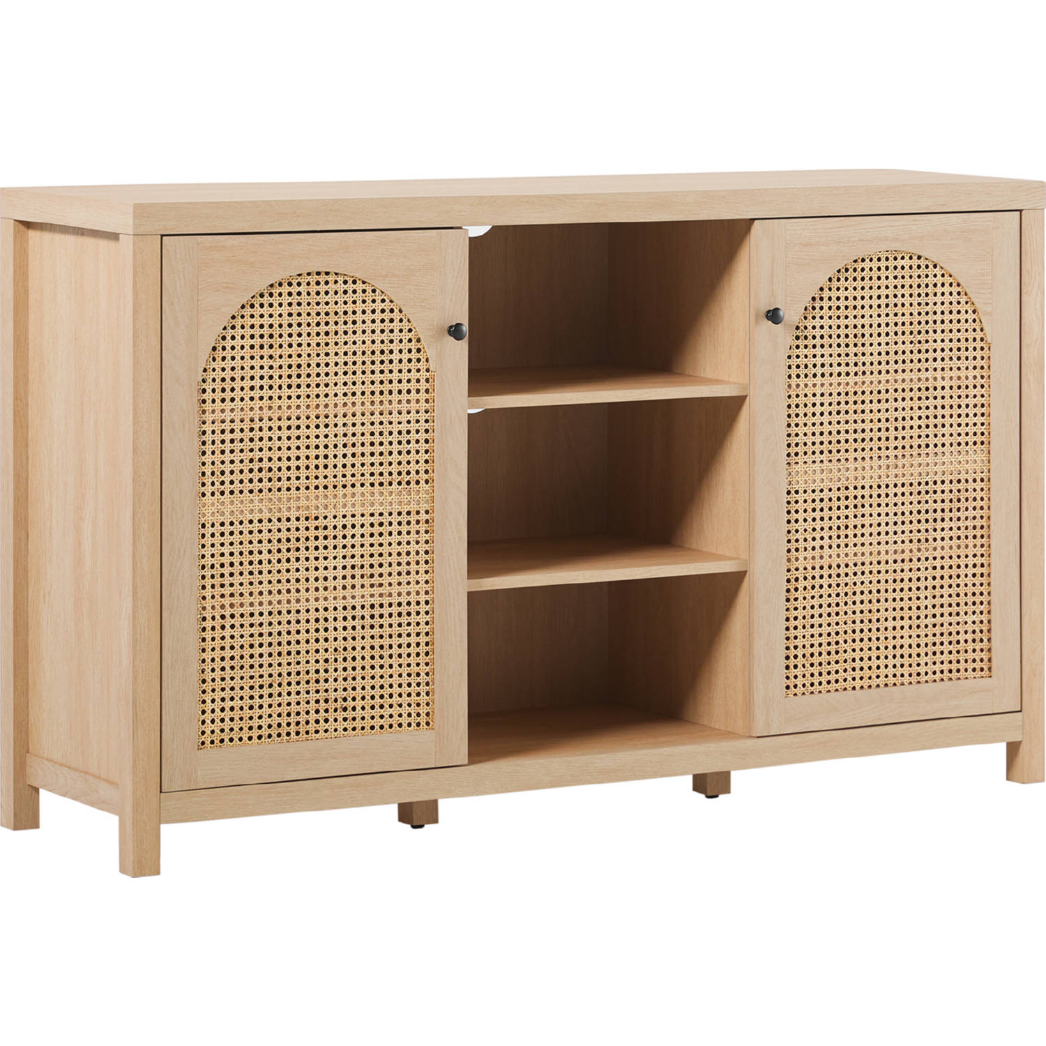 • Two arched rattan door panels add interest