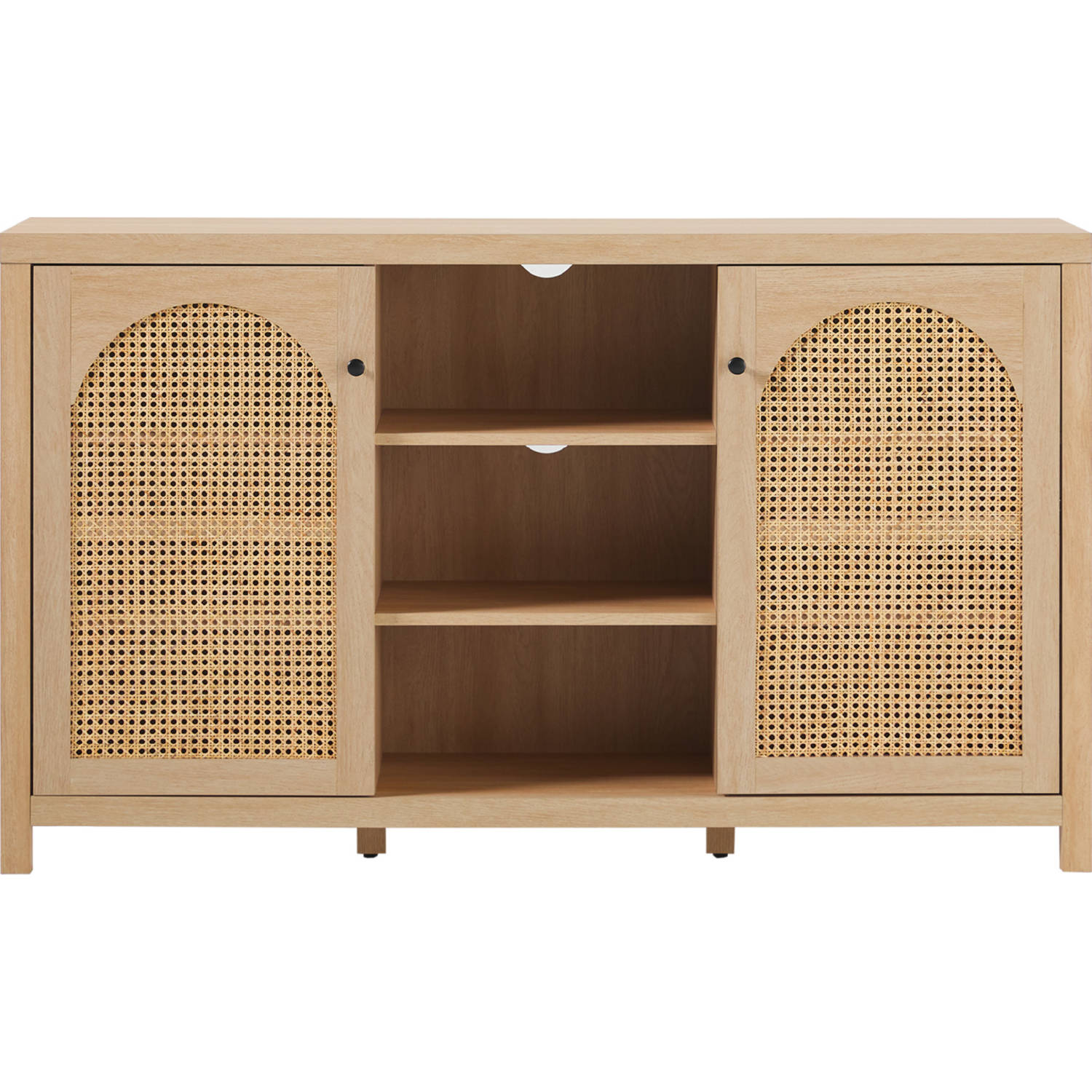 Walker Edison SAHD5DCO Sasha 58" 2 Door Sideboard Arched Rattan Panels Coastal Oak Finish