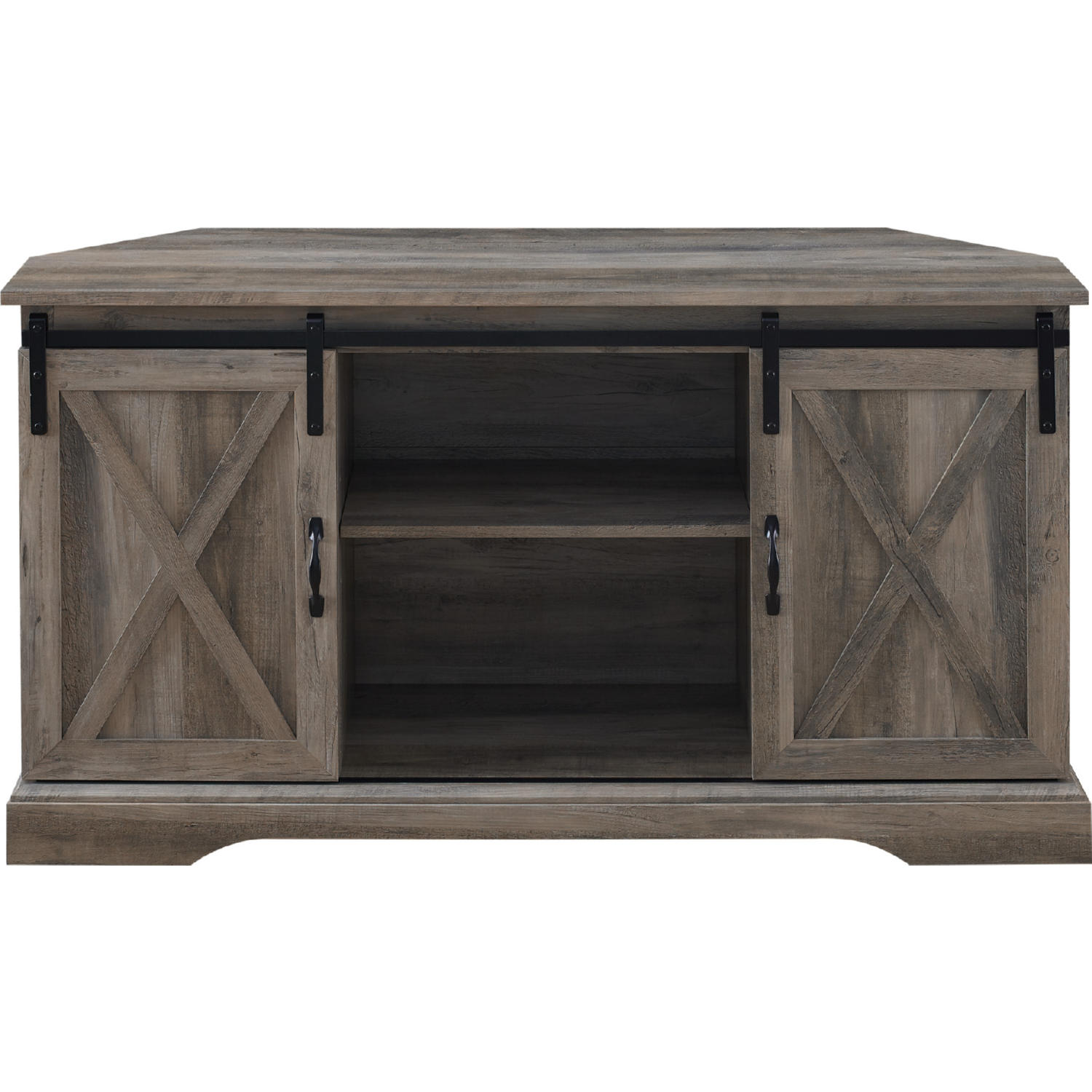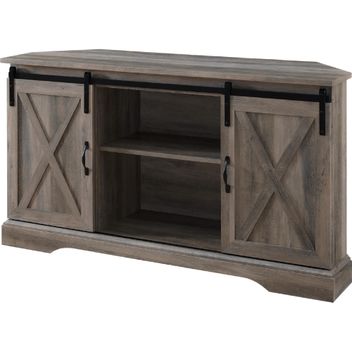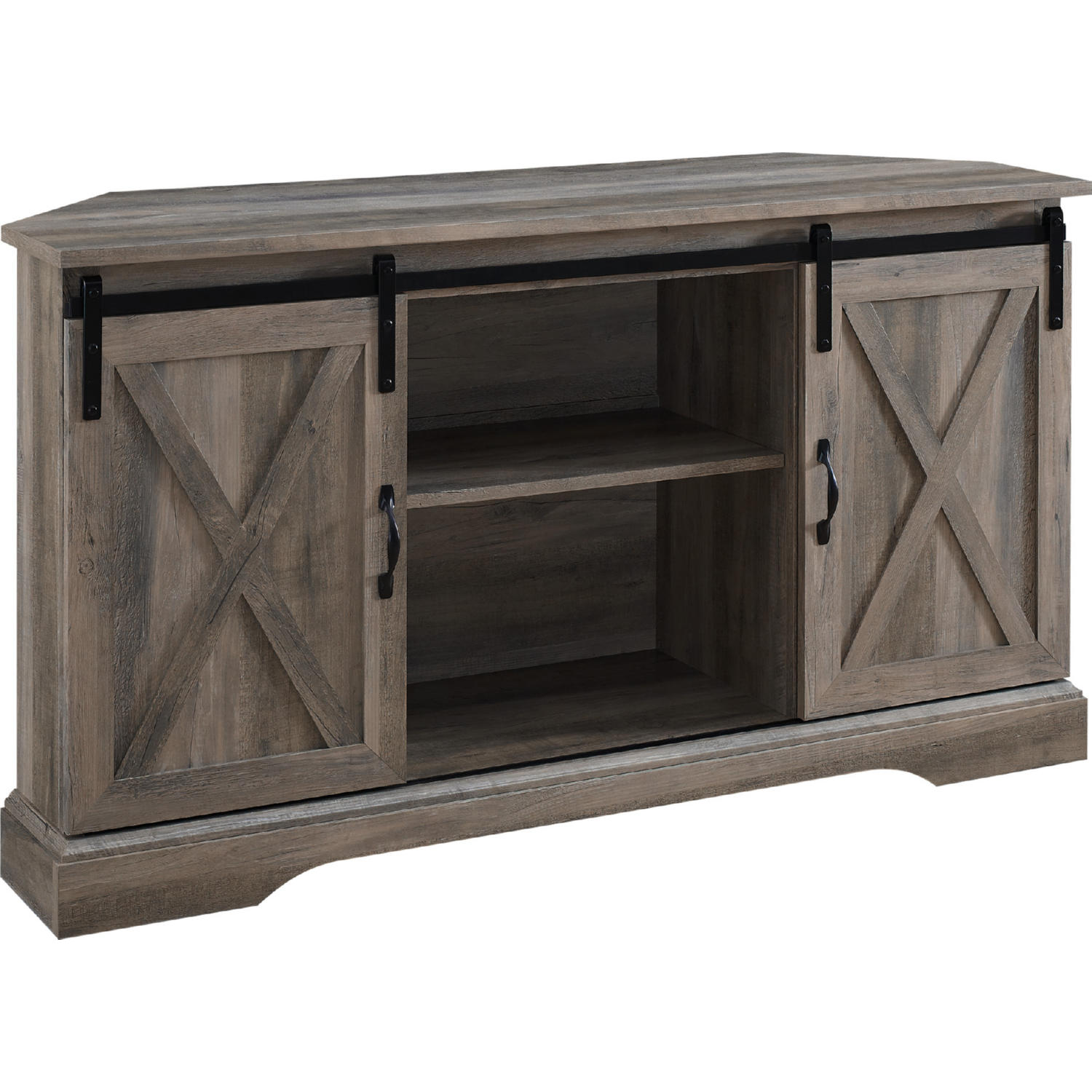 Walker Edison Sliding Barn Door 52" Corner TV Stand in Grey Wash