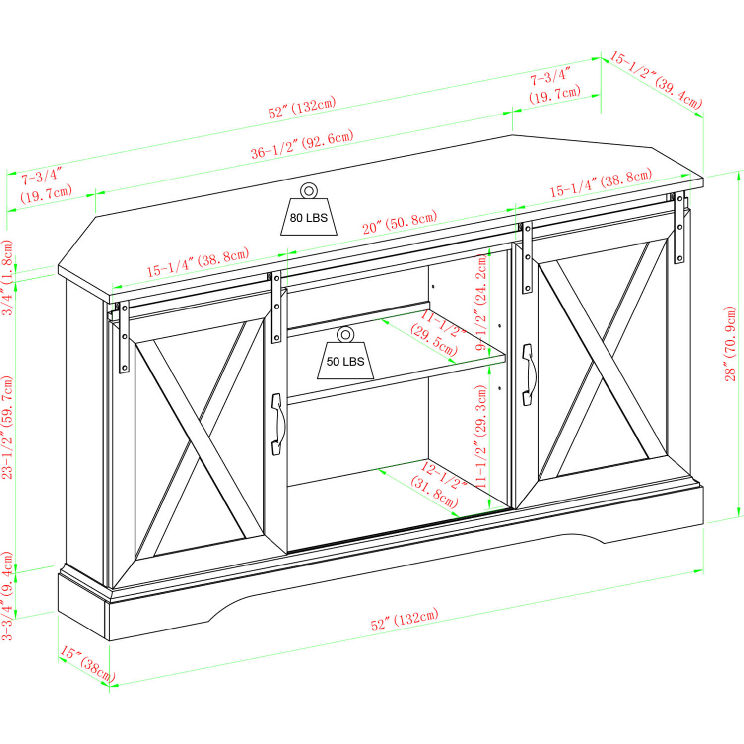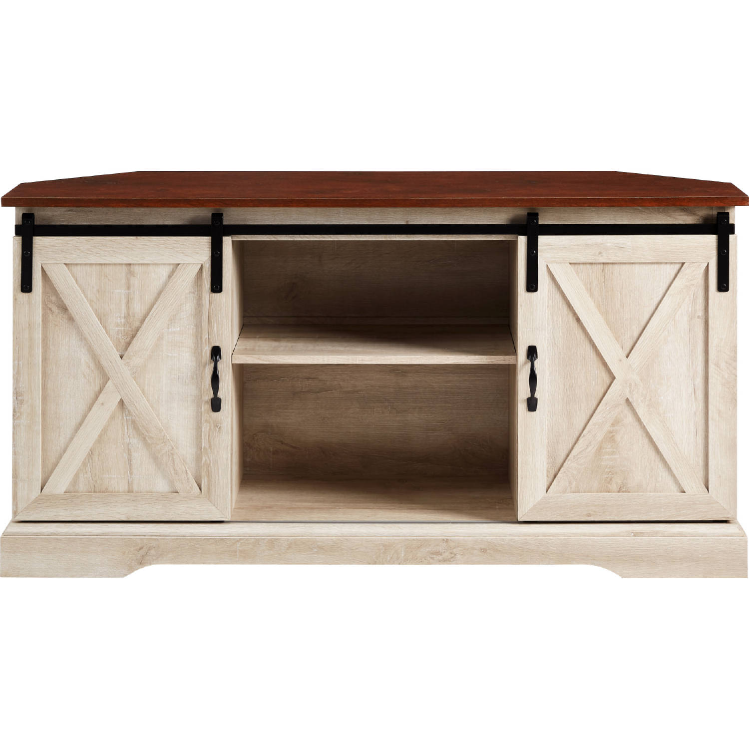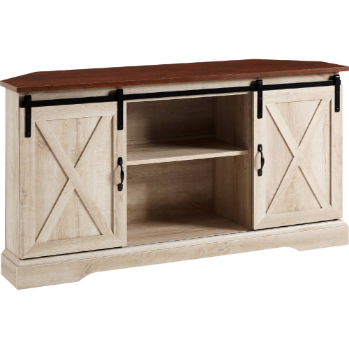 Walker Edison W52SBDCRTBWO Sliding Barn Door 52" Corner TV Stand Brown White Oak