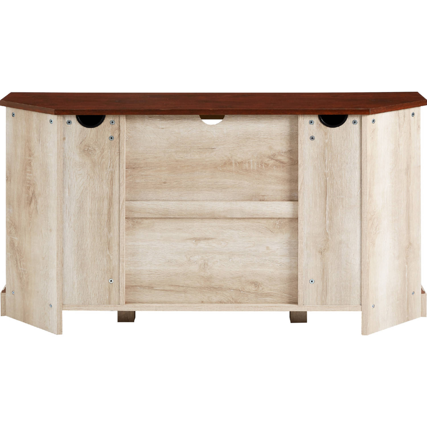 Walker Edison Sliding Barn Door 52" Corner TV Stand in Brown & White Oak
