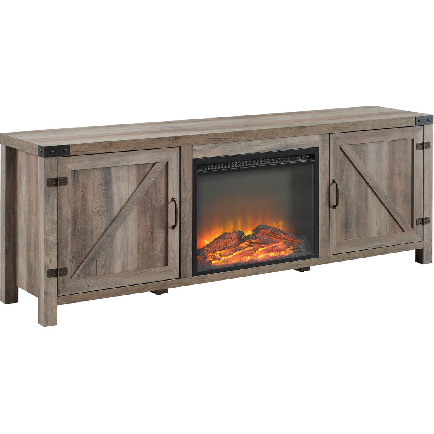 Walker Edison W70FPBDSDGW Barn Door 70" Fireplace TV Stand Console Grey Wash Finish