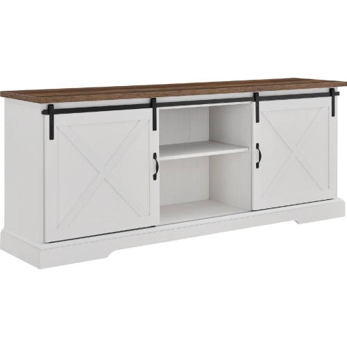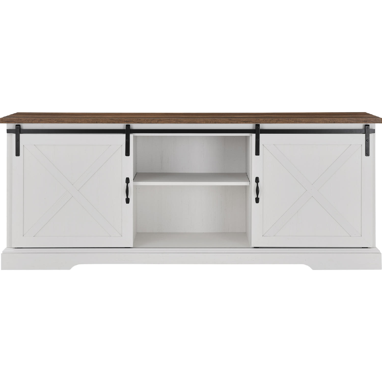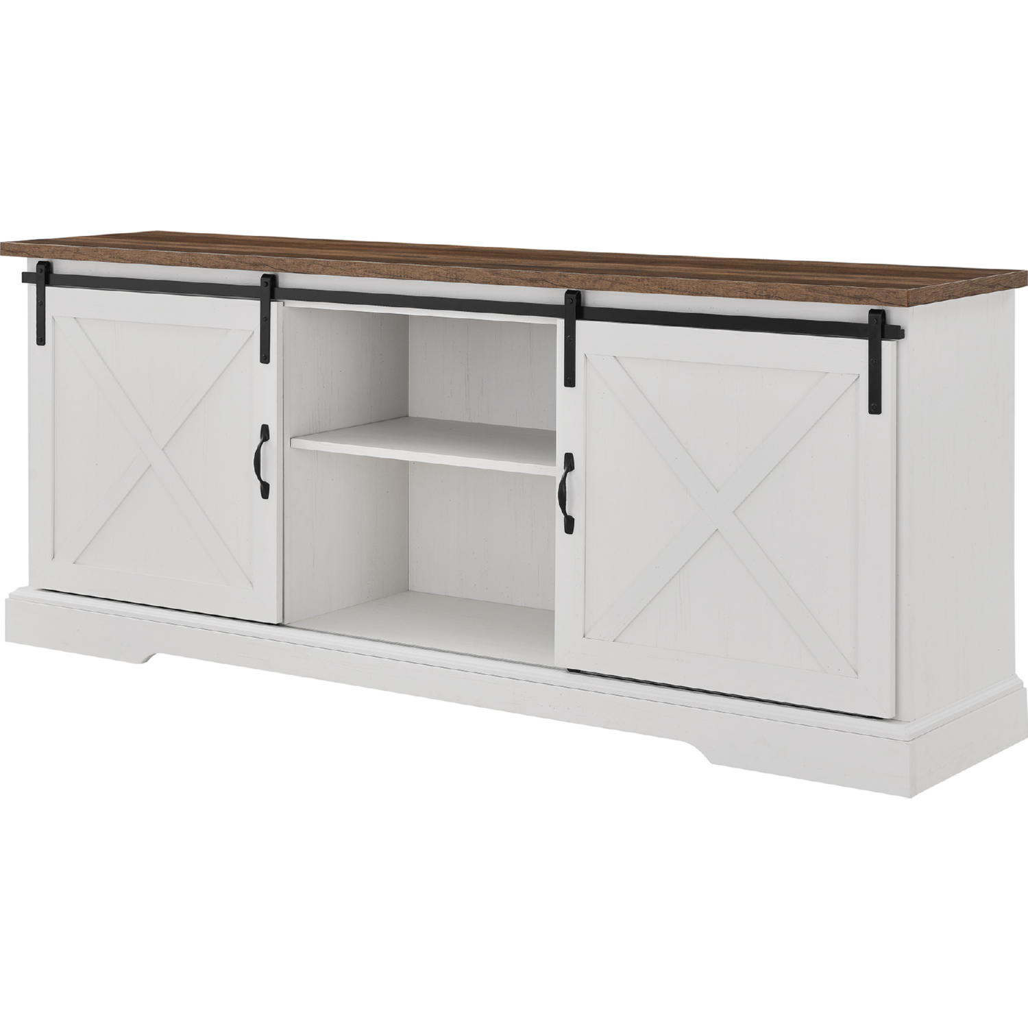 Walker Edison W70SBDROBRW 70" Sliding Barn Door TV Stand Reclaimed Barnwood Brushed White