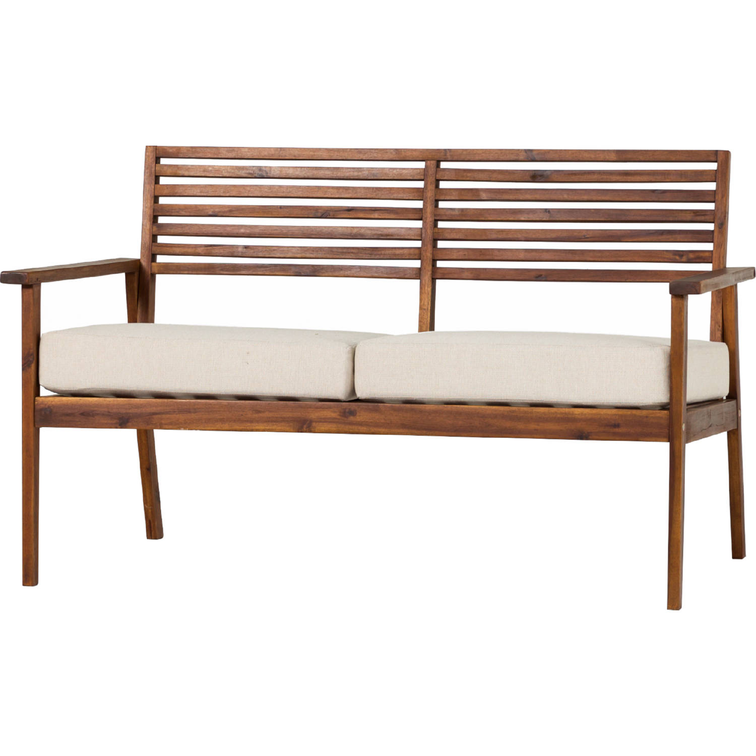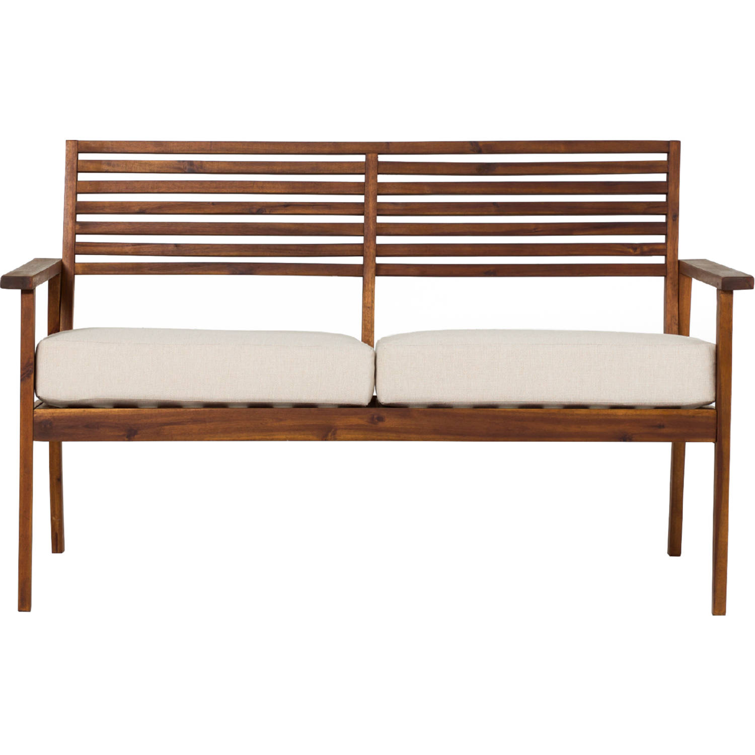 Walker Edison Zander Outdoor Loveseat in Dark Brown Finish Wood & Neutral Fabric