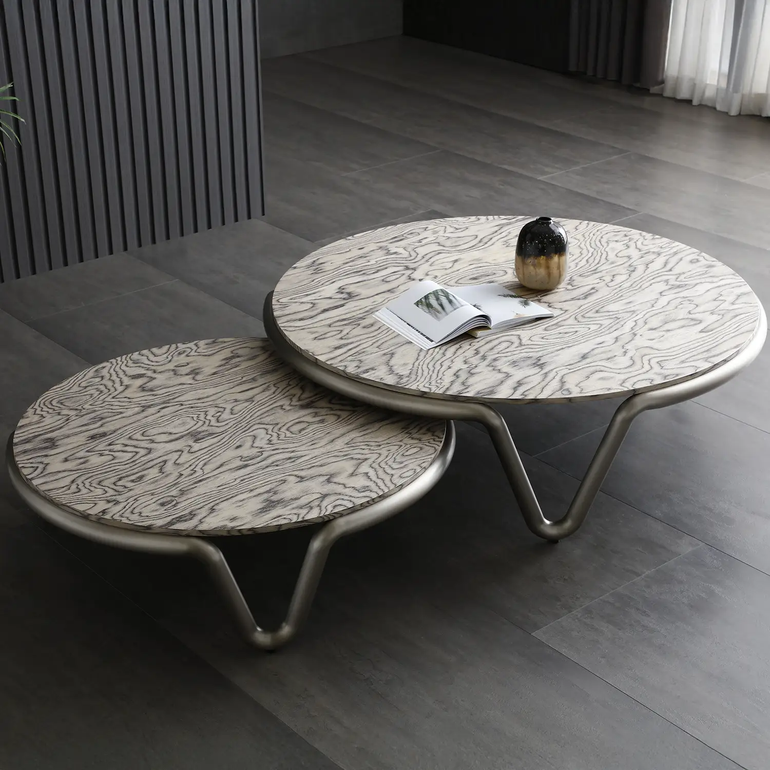 Whiteline Modern Living CT2035L-GRY Anaconda 55" Coffee Table Maple Veneer & Brushed Nickel
