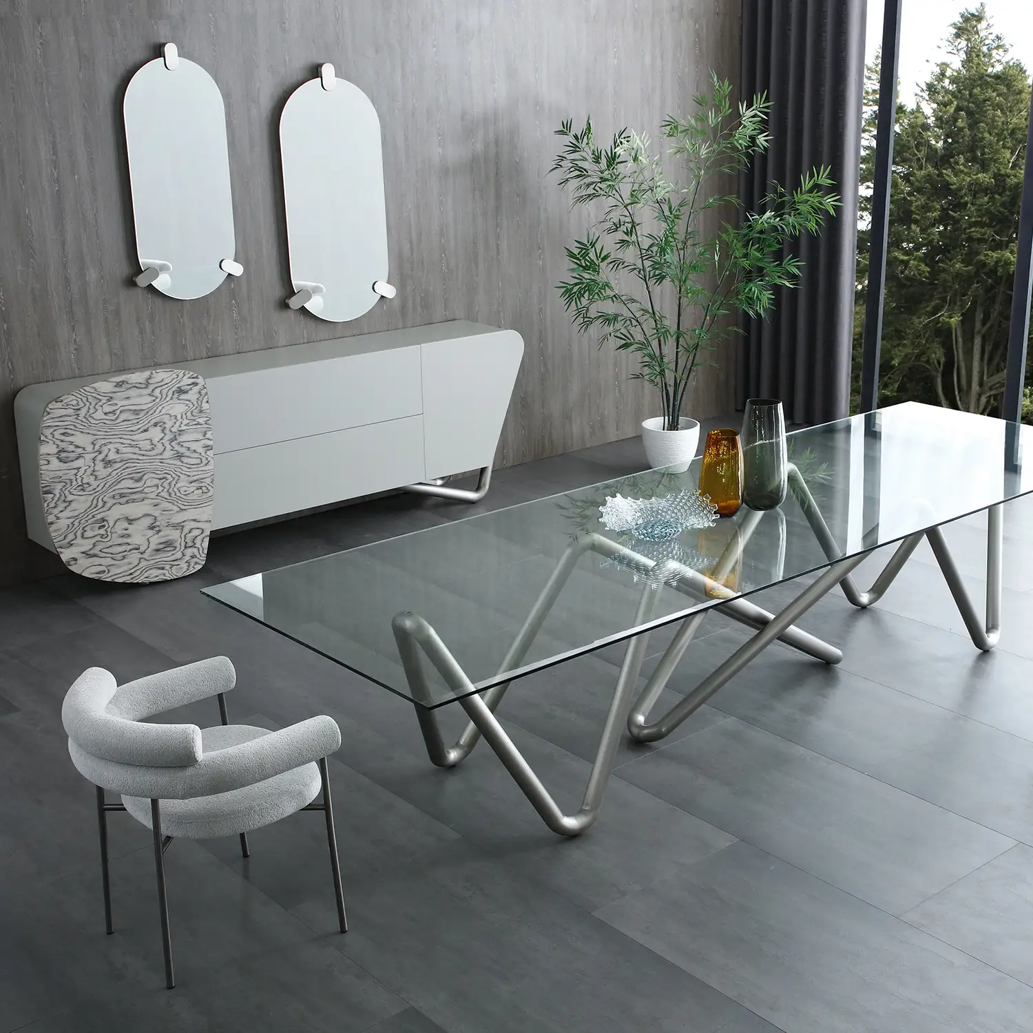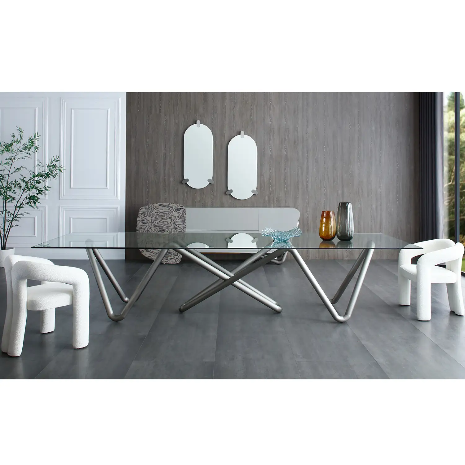 Whiteline Modern Living Anaconda Oval Mirror in Silver Glass & Brushed Nickel