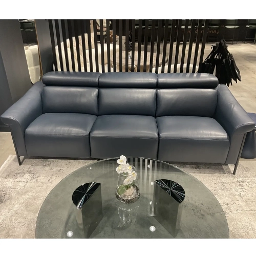 Whiteline Modern Living Martine Power Recline Sofa in Blue Leather & Black Metal
