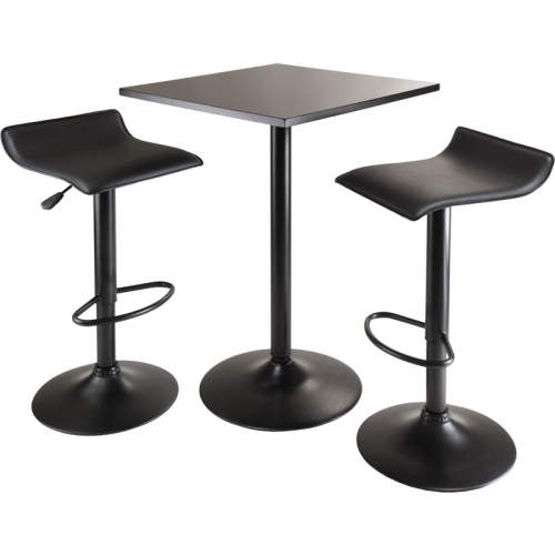 Winsome Obsidian 3 Piece Set - Square Counter Table with 2 Airlift Stools in Black Vinyl