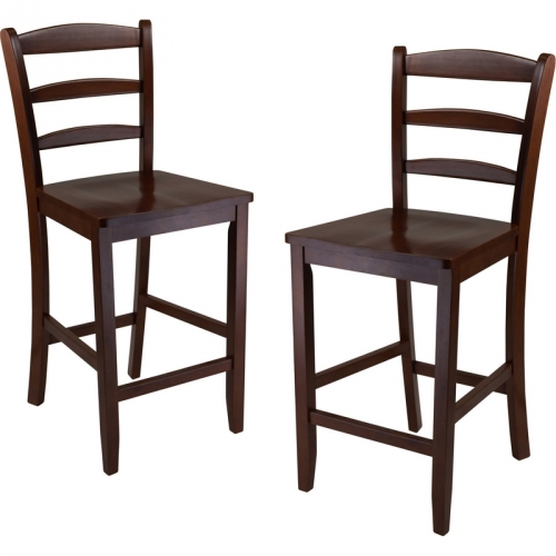 Winsome 94244 24" Counter Ladder Back Stool Antique Walnut (Set of 2)