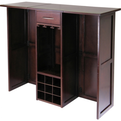 Winsome Newport Wine Bar Expandable Counter in Antique Walnut