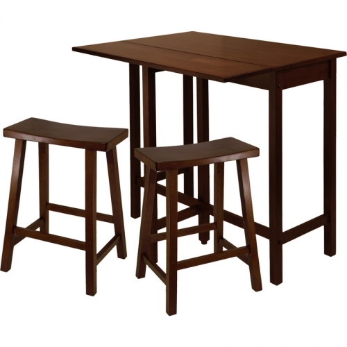 Winsome 94384 Lynnwood 3PC High Drop Leaf Table Two 24" Saddle Seat Stools Antique Walnut
