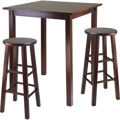 Winsome 94390 Parkland 3 Piece High Table Set 2 Square Leg Stools Antique Walnut