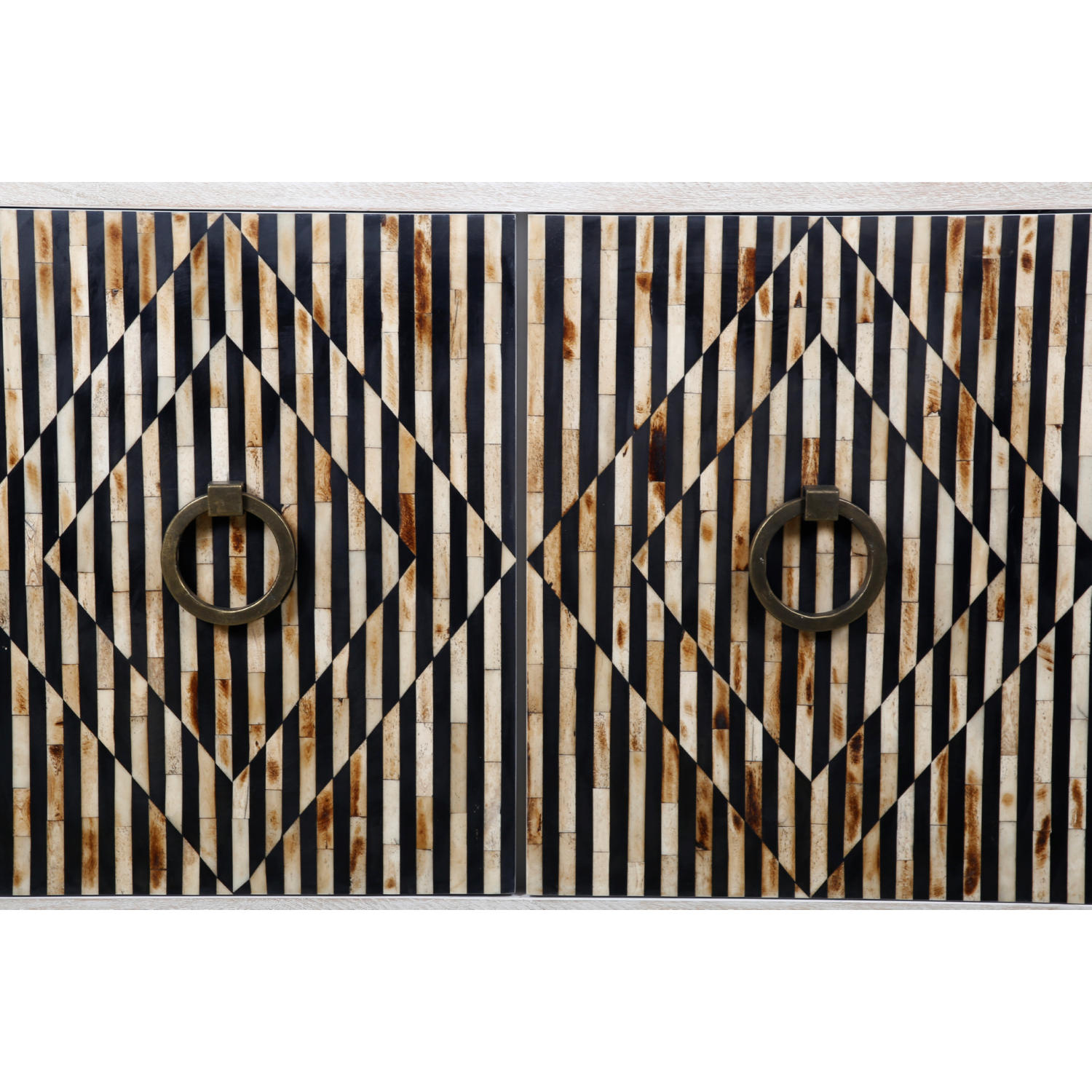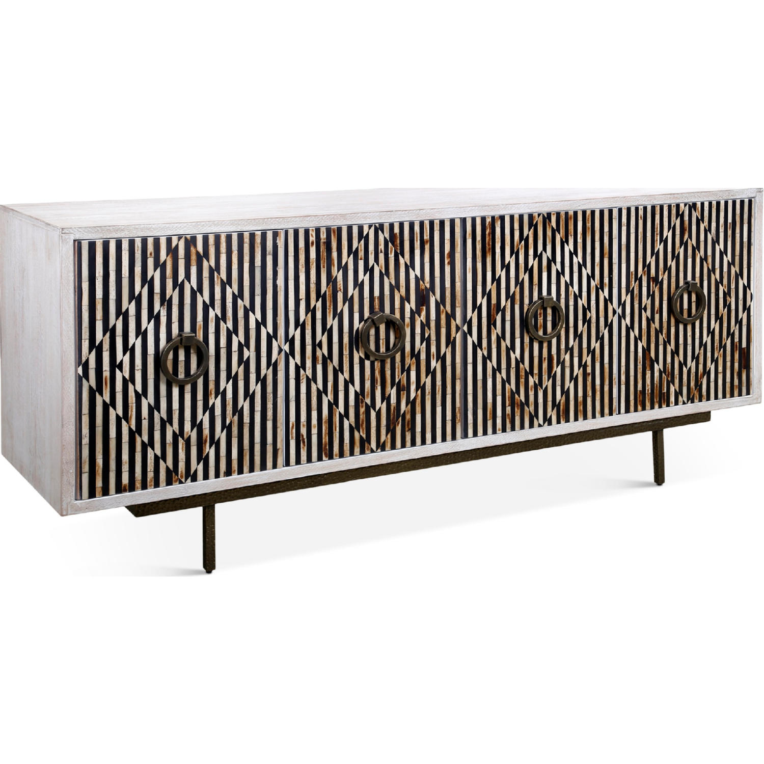 World Interiors ZWALXBF72BWH Alexandria 72" Sideboard Multicolor Inlays Washed Wood Metal