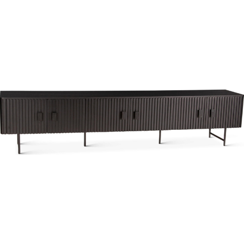 World Interiors Halden 98" Media Cabinet in Matte Black Mango Wood & Black Iron