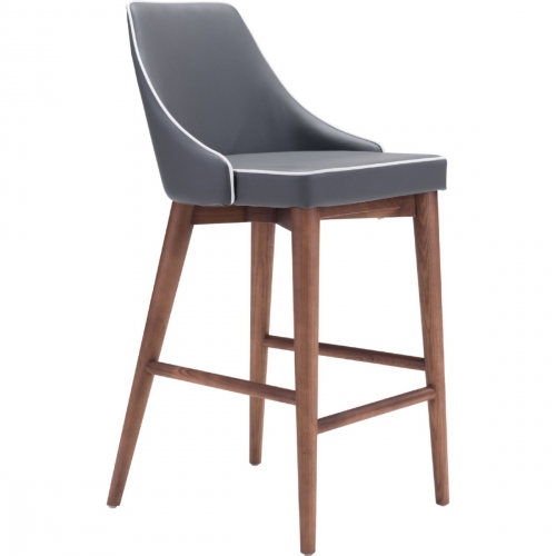 Zuo 100280 Moor Counter Chair Dark Gray Leatherette Contrast Piping on Tapered Wood Legs