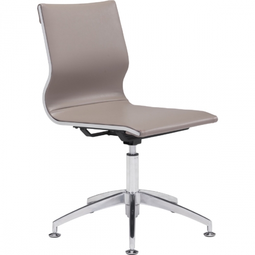 Zuo 100379 Glider Conference Office Chair Taupe Leatherette on Brushed Chrome