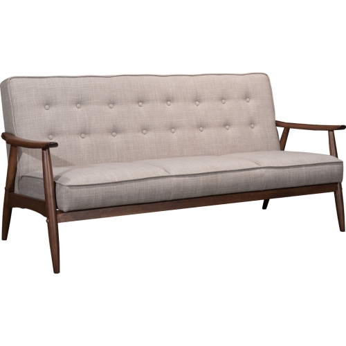 Zuo 100533 Rocky Sofa Putty Gray Poly Linen on Walnut Finish Wood Frame