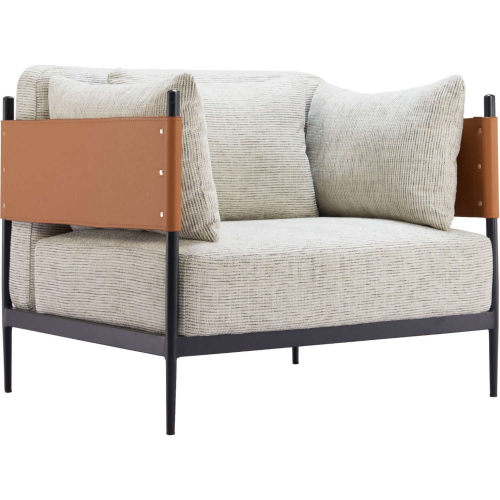Zuo Stirbe Accent Arm Chair in Gray Fabric, Brown Leatherette & Black Metal
