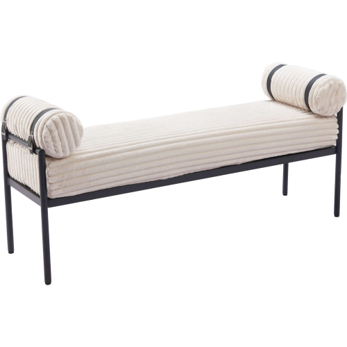 Zuo Barrow Bench in Cream Corduroy Fabric & Black Steel
