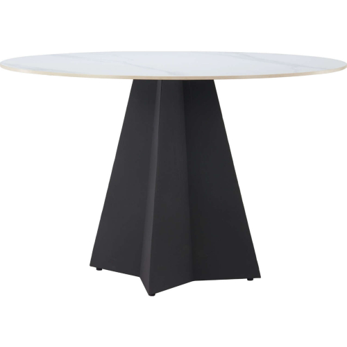 Zuo Izar 47" Round Dining Table in White Faux Marble Sintered Stone & Black Steel