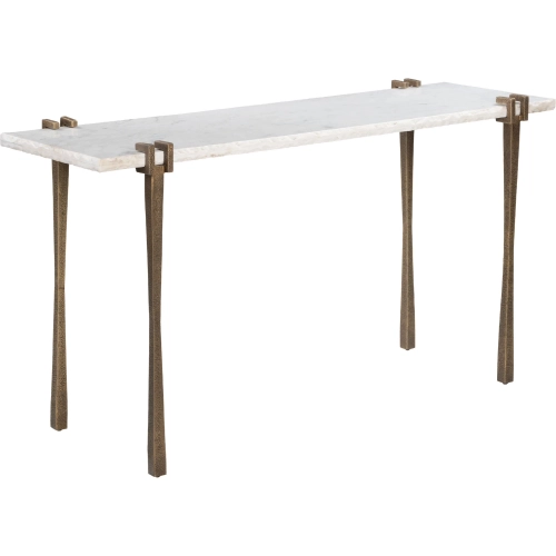 Zuo Rench Console Table in White Natural Marble & Brass Iron