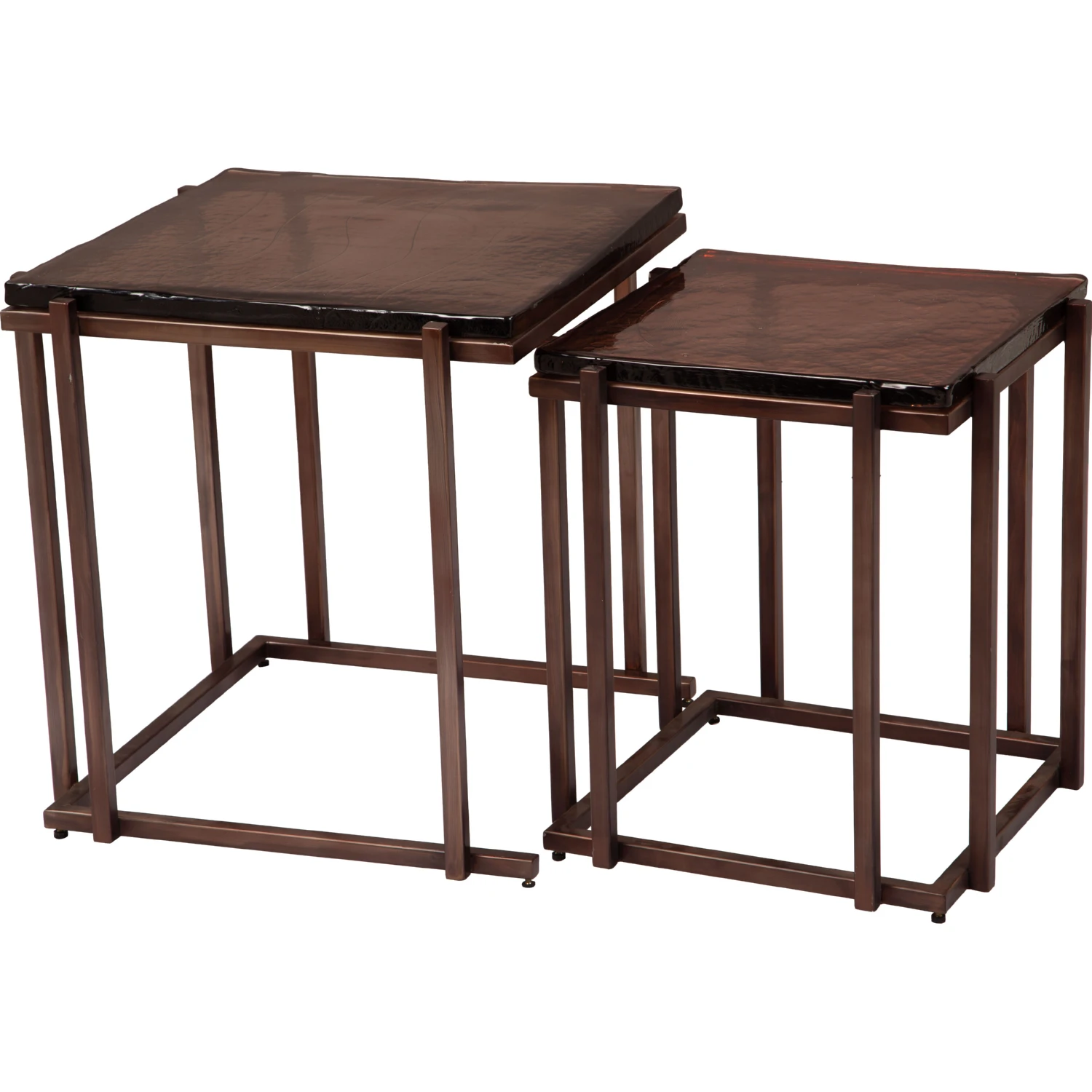 Shimai Nesting Table ins Bronze Recycled Sand Cast Glass & Iron (Set of 2)