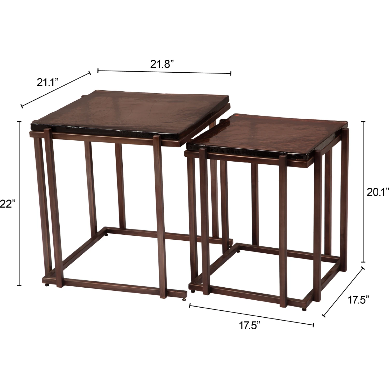 Zuo 110621 Shimai Nesting Table ins Bronze Recycled Sand Cast Glass Iron (Set of 2)