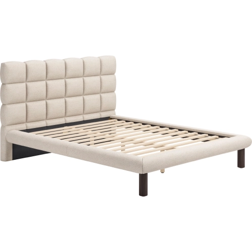 Zuo 110668 Placid Queen Bed Tufted Beige Shearling Style Fabric