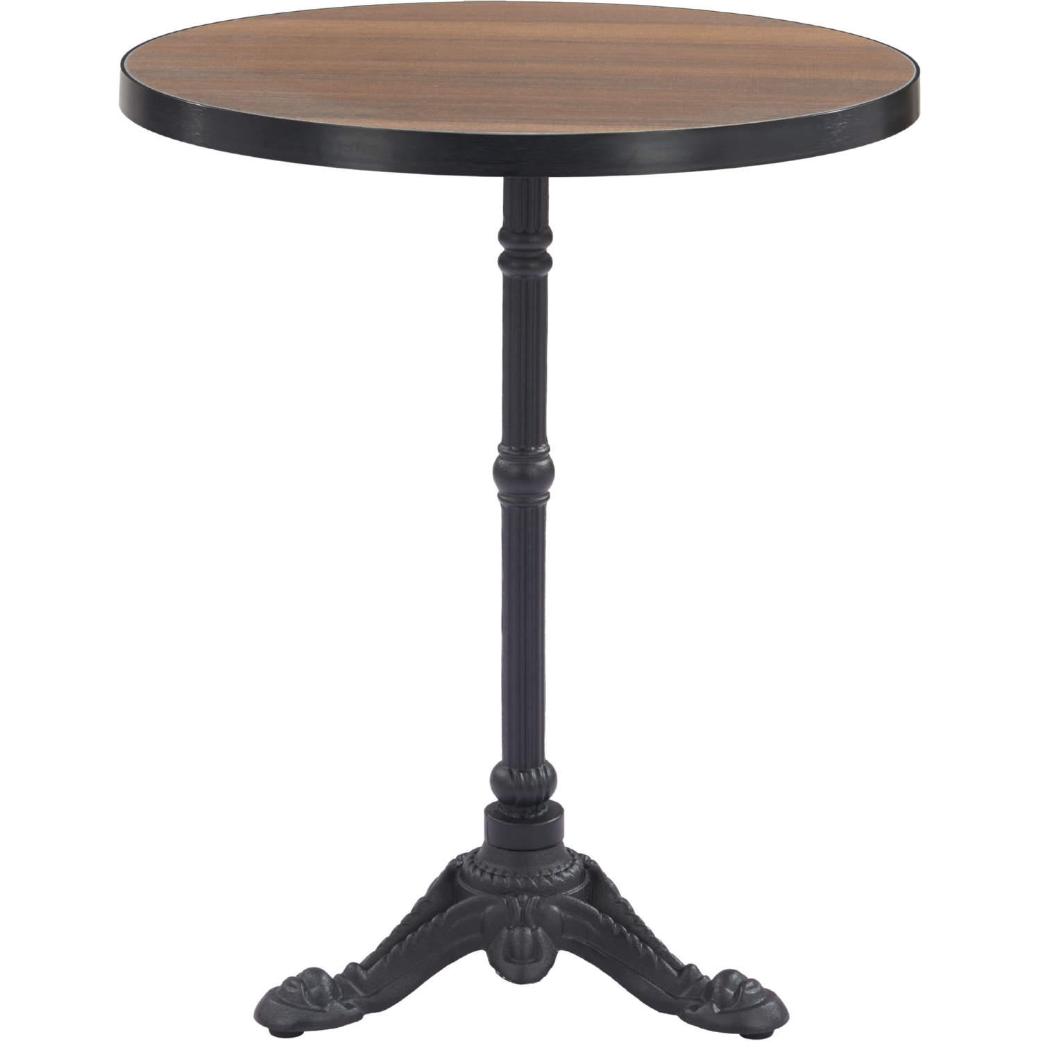 Zuo Gazebo Outdoor 24" Dining Table in Walnut Finish Faux Wood & Black Metal