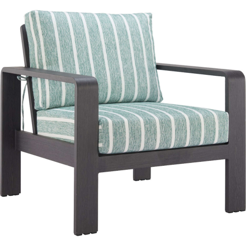 Zuo Rolig Outdoor Accent Arm Chair in Green Stripe Fabric & Black Aluminum